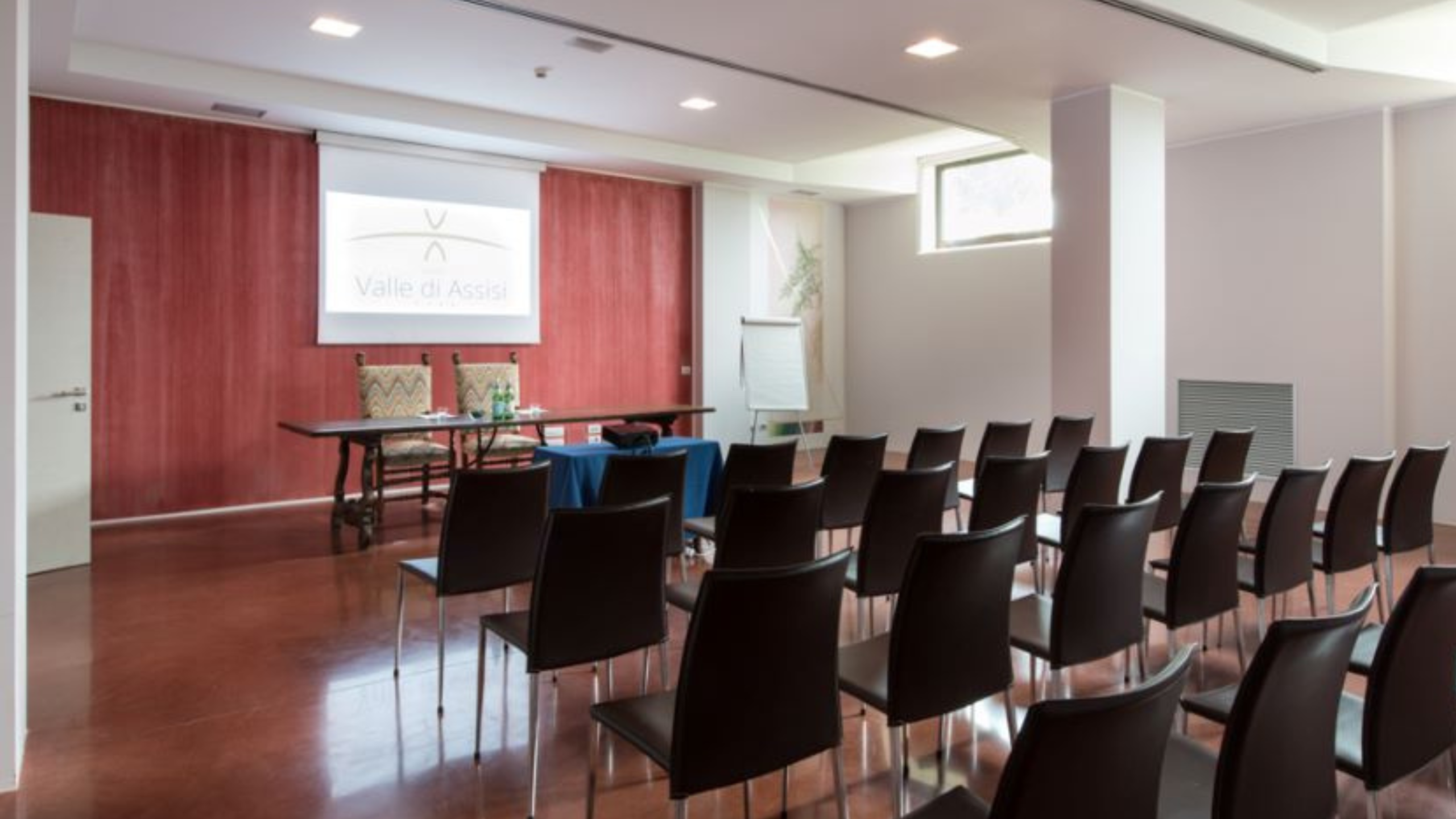 Der Versammlungsraum Prugna bietet Platz für bis zu 60 Personen, je nach Anordnung der Stühle und Tische.