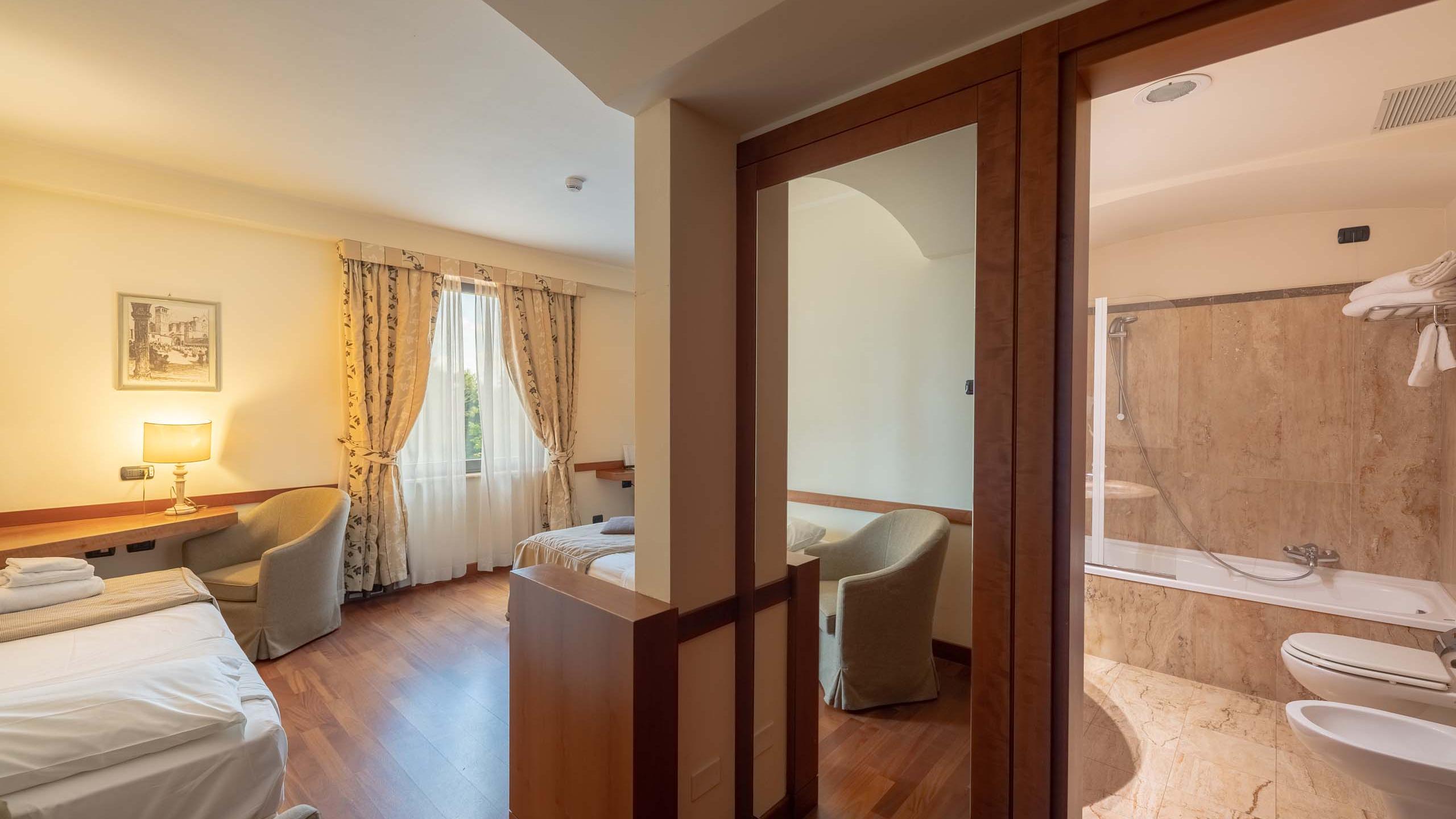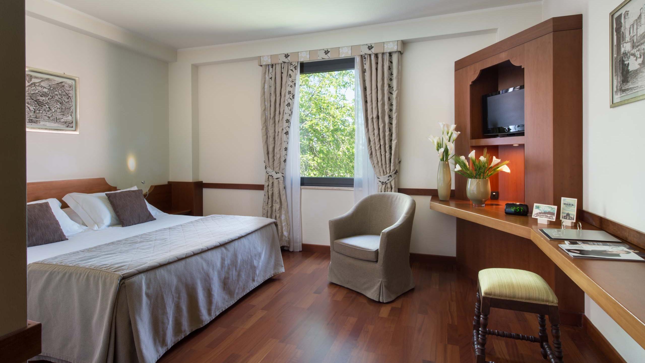 Our Classic rooms are ideal for those who love simplicity and are looking for good value for money. They feature classic wooden furnishings and soft colours, with parquet and local terracotta flooring. The atmosphere is welcoming and relaxing, perfect for those who can’t wait to put down their suitcase, open the windows onto the Umbrian countryside, and let the fresh country air work its magic.
